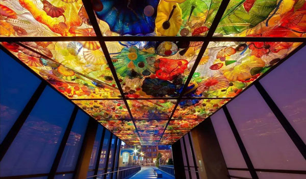 该玻璃艺术馆内囊括了大量Chihuly的玻璃艺术品,展出分室内与室外,是无与伦比的视觉盛宴。建议傍晚的时候去,因为有很大一部分展品是露天展示,这时候光就会起到很神奇的效果。如果傍晚的时候去,既可以看到日光下的玻璃反射的效果,又可以看到夕阳下玻璃的样子以及晚上灯光下所呈现的效果。