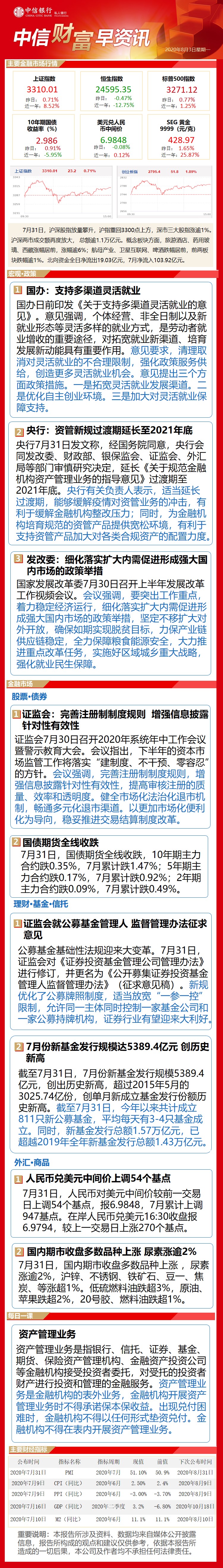中信财富早资讯8月3日