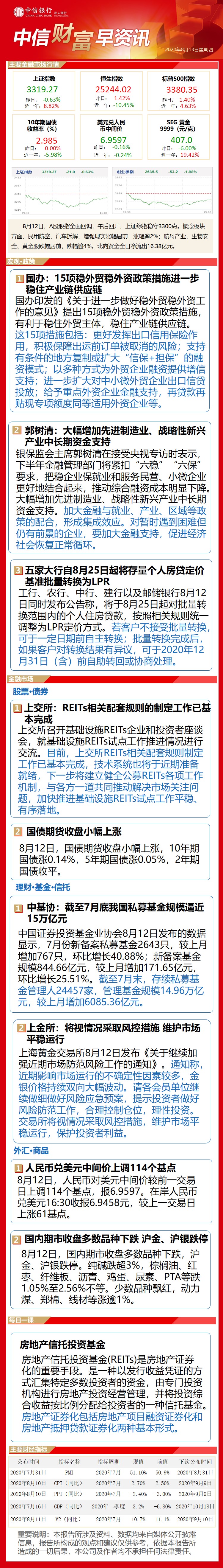 中信财富早资讯8月13日